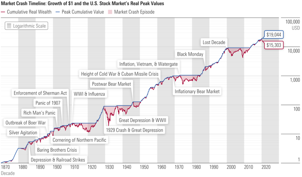 History never repeats itself, but it often rhymes. When the stock market declines, the media jumps on the story with click-worthy headlines. In the past, experienced and successful investors didn’t react emotionally, didn’t panic, didn’t try to time the market, and stayed invested. Selling stocks when the market is down and going to cash will lock in a capital loss that cannot be undone when the market recovers.